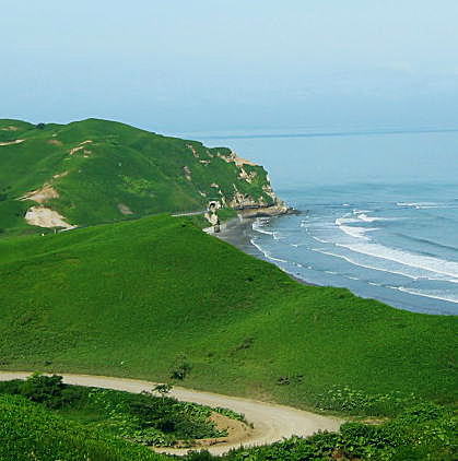 十勝川・浦幌十勝川を渡り十勝太へ。そこから太平洋岸沿いを進む1本のダート。 広漠たる大地と太平洋の荒波の間を縫って走る道はかつての北海道の姿を垣間 見させてくれる貴重な存在である。しかしその懐かしき姿を変える日も遠くない。 (2003/8撮影)